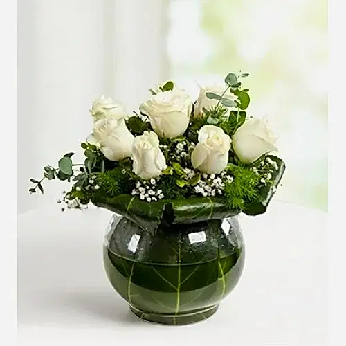 Küre cam vazoda cipso ve yeşilliklerle süslenmiş Beyaz Gül ile hazırlanan Beyazın Zarafeti Gül Aranjmanı, sevdiklerinizin gününü güzelleştirecek zarif bir jest olacak.